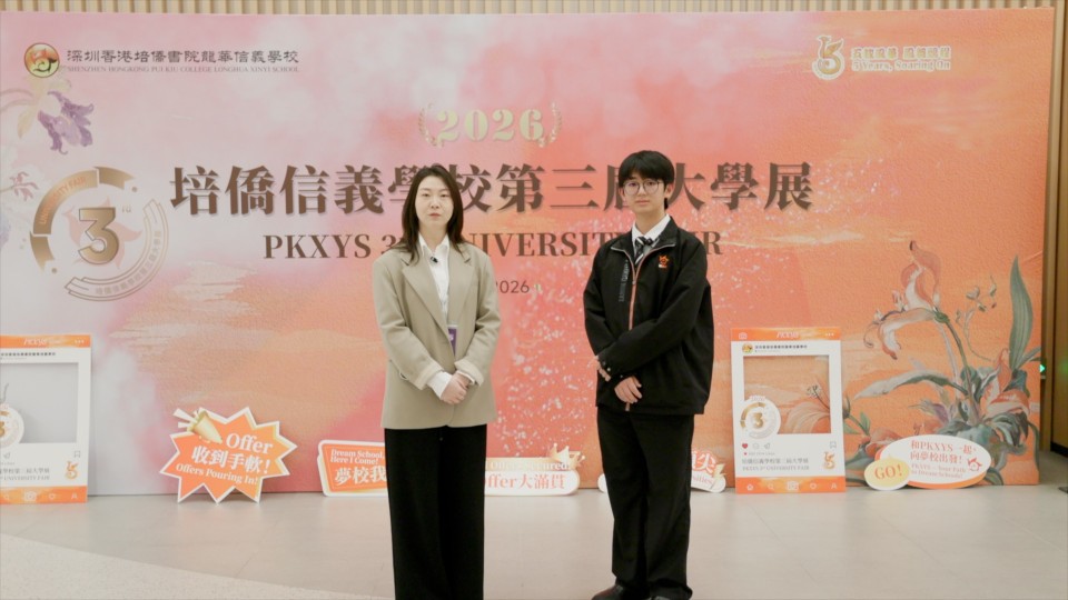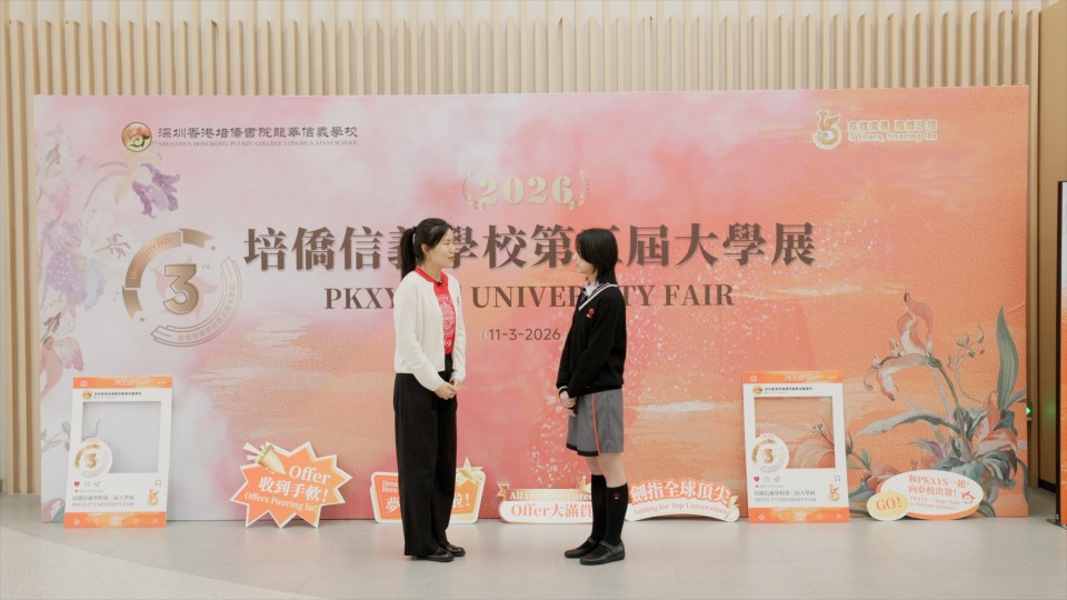 For the school, the fair also serves as an opportunity to present itself to the wider world, showcasing Pui Kiu Xinyi School's educational philosophy and the calibre of its students. More than twenty student representatives were actively involved throughout the event. From guiding university representatives on campus tours to hosting sessions, conducting interviews, and assisting with event organisation, they developed cross-cultural communication skills, strengthened leadership and teamwork, and gained valuable real-world experience.
