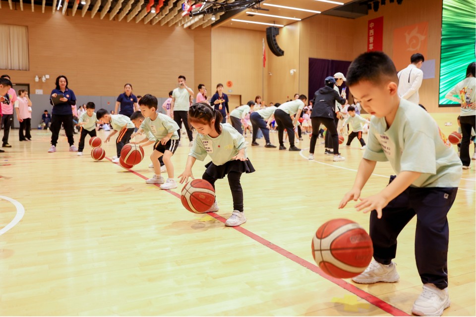 Small hands guided the bouncing balls across the floor. Each "thump-thump" was the perfect rhythm of childhood. At the referee's signal, children moved their hands quickly and skilfully, sweat dampening their foreheads, eyes shining with determination. Every precise bounce reflected persistence, while parents' cheers echoed around the arena.