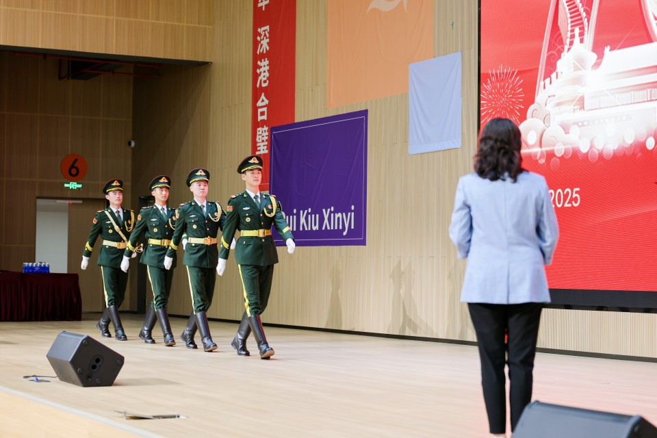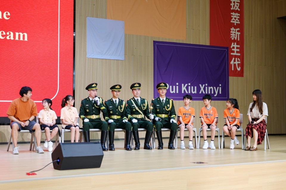 We were honoured to welcome members of the Chixin National Flag Guard — former soldiers of the People's Liberation Army's (PLA) honour guard. In the past, they stood at dawn to raise the flag in Tiananmen Square, demonstrating the highest loyalty to the motherland. This time, they came to Pui Kiu Xinyi School to fulfil a special promise — one of honour, belief, and youth.