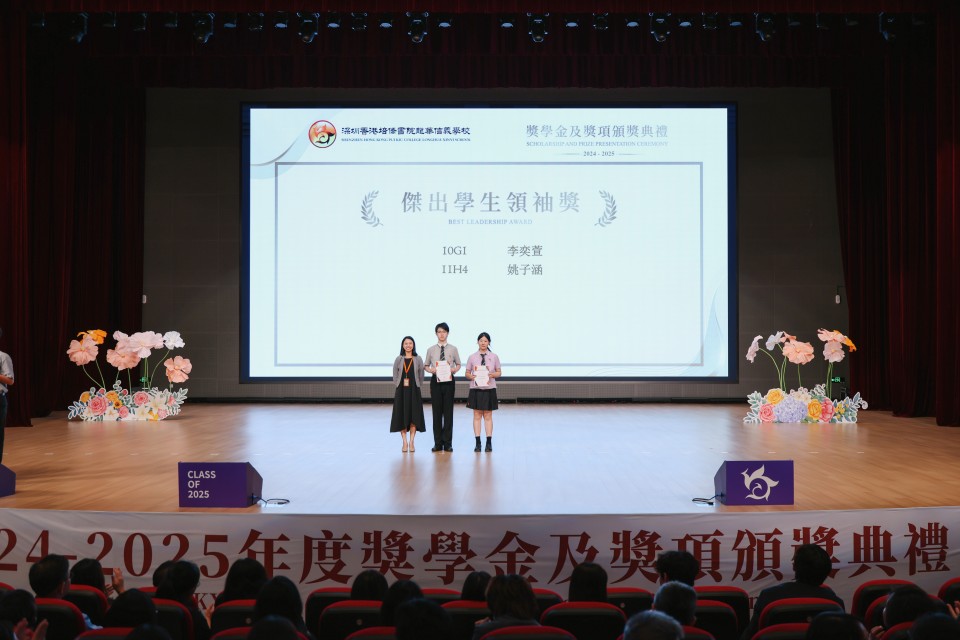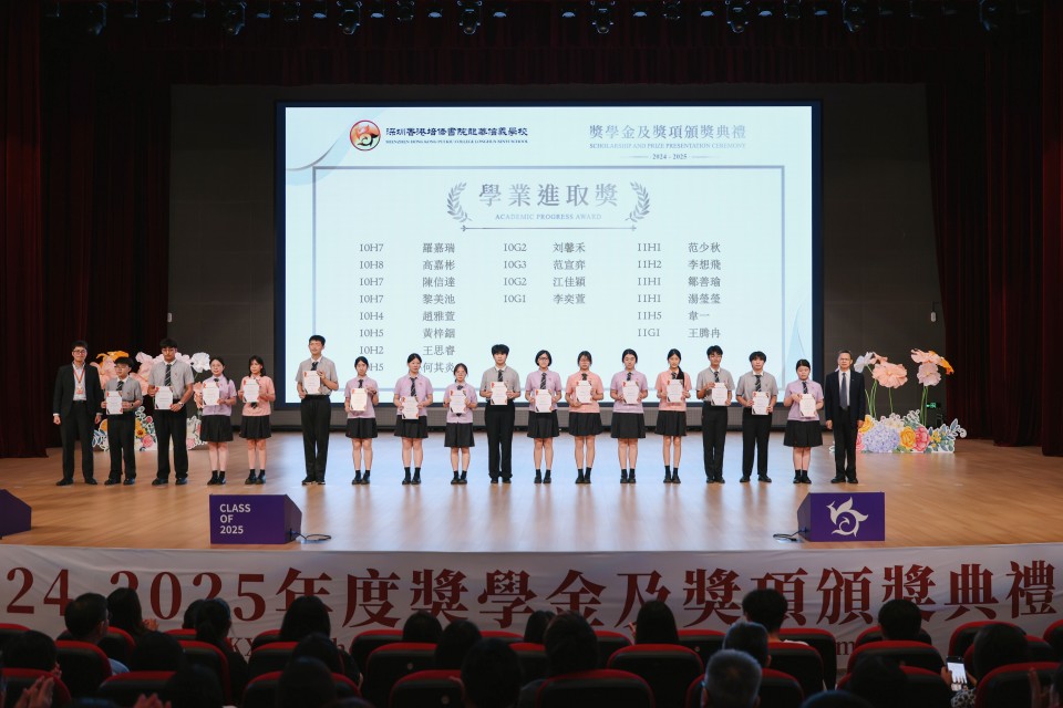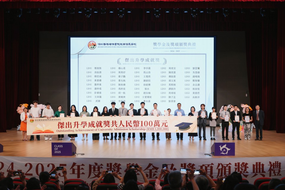 This year, over four hundred students were honored for their achievements in various fields, including university admission achievements, excellence in public examinations, academic performance, service and leadership, as well as sports, music, and visual arts. Among them, the Class of 2025 achieved remarkable university admission outcomes, with recipients of the Outstanding Achievement of University Admission Award securing places at to world-renowned top universities. These include Tsinghua University and Zhejiang University in mainland China; the University of Hong Kong, the Chinese University of Hong Kong, and the Hong Kong University of Science and Technology in Hong Kong; as well as Imperial College London in the United Kingdom.