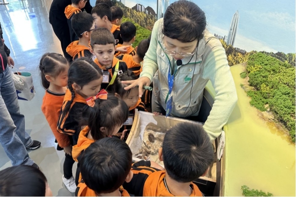 The children also explored old photos of a small fishing village, recognised traditional fishing tools, and heard stories about Shenzhen's past. They learnt that "this area used to be a fishing village, but now it's a safe haven for small animals," discovering how urban development and wetland conservation go hand in hand.