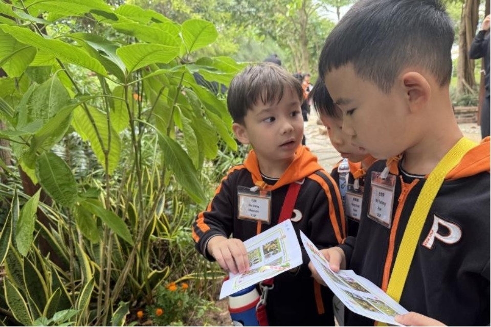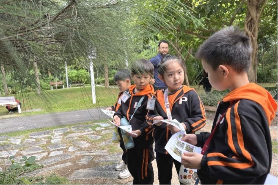 After leaving the exhibition centre, each child received a "Plant Mission Card" with illustrations of three types of mangrove leaves. They teamed up with their friends for a fun "treasure hunt":