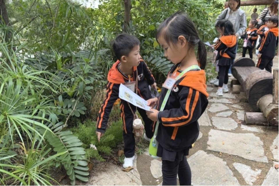 Each class had its own special "photo spot". The children proudly held their mission cards or a leaf they particularly liked and posed with their friends for an "exploration photo" to capture the happy learning moments!