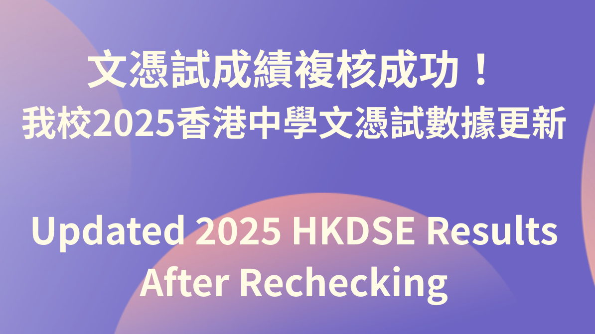 文憑試成績複核成功!我校2025香港中學文憑試數據更新!