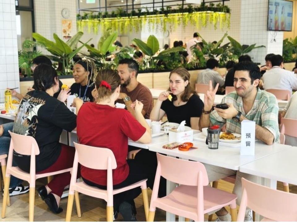 經過上午的頭腦風暴和藝術創想環節,老師們的肚子也開始咕咕叫啦!別擔心,「能量加油站」早已準備就緒,等待著為大家補充滿滿的元氣!用餐期間,老師們三五成群地圍坐在一起,一邊品嚐著美味佳餚,一邊愉快地交流著上午的見聞與感受。