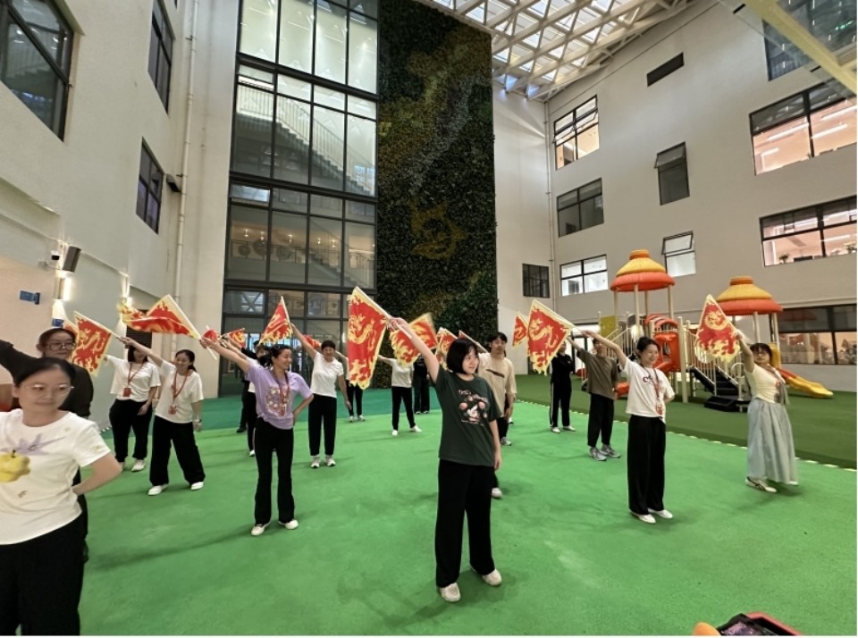 短暫休息後,老師們又馬不停蹄地投入到節目排練中。教師們紛紛展露出隱藏在教學背後的多才多藝。朗誦聲情並茂,如潺潺溪流,潤物無聲;打鼓鏗鏘有力,似萬馬奔騰,激情澎湃;舞旗英姿颯爽,若驕陽似火,活力四射。每一個節目都飽含著教師們的心血與期待,大家秣馬厲兵,為即將到來的展示時刻積蓄力量。