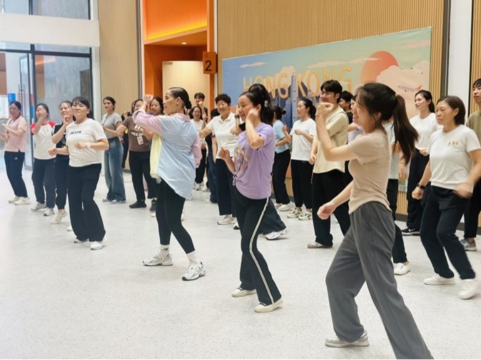 最讓人期待的「放鬆時刻」來啦!這無疑是活動中的一抹亮麗色彩,在書院的開闊空間裏,我們準備了團建活動,還有熱鬧的「開場舞」:身體大律動,跟著熟悉的旋律,和同事們一起擺動身體、釋放活力,讓煩惱隨著節奏飄走。在齊頭並進遊戲中,教師們各自展現出團結協作的精神,步伐一致,向著共同的目標奮勇前行;玩坐地起身時,大家相互扶持,攻克難關,體現出了強大的凝聚力;遊戲引發陣陣歡笑,將現場氛圍推向高潮。