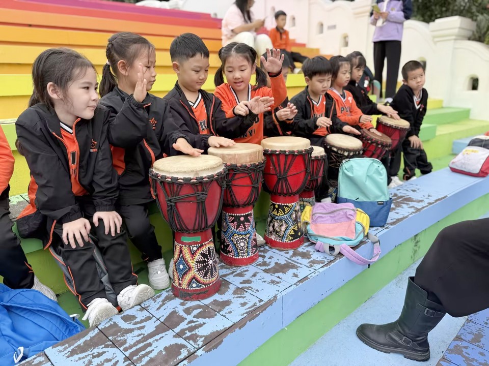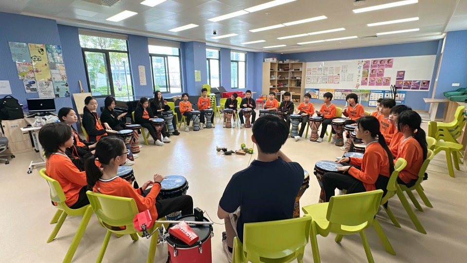鼓點敲響心跳,韻律連接彼此。香港課程六年級同學們在專業音樂家的指導下進行非洲鼓合奏,隨著強勁的節奏舞動,全身心沉浸於熱情奔放的非洲文化之中。