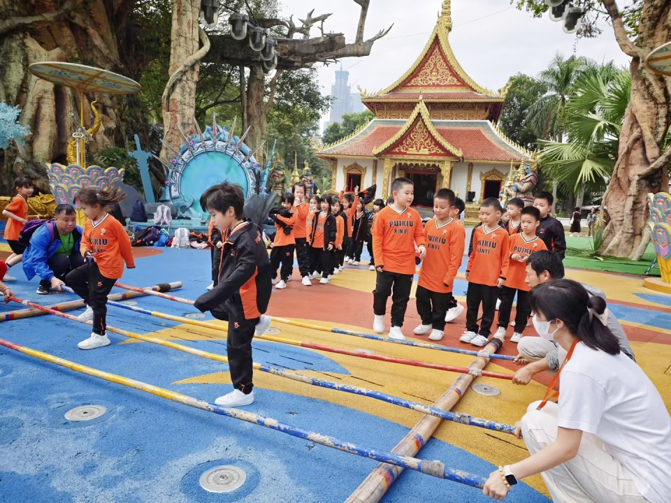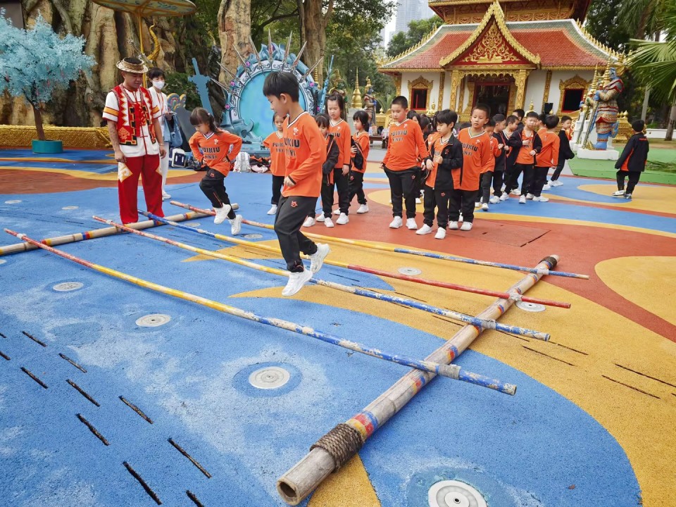 黎族草編上手體驗,解鎖傳統技藝;竹竿舞躍動起跳,盡顯協作默契;摩梭手鼓敲響節奏,傳遞民族風情。漫步民俗村,賞特色建築、聽文化故事,孩子們在體驗中感受民族文化魅力,厚植民族融合與團結的種子!