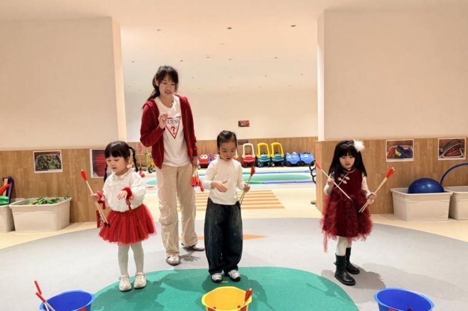 砸福迎春,好運連連;哪吒助陣,福氣滿盈。小萌娃們化身勇敢小哪吒,手握軟沙包蓄勢待發,在體能室的趣味賽道上開啟砸福大挑戰!先靈巧跳過地面呼啦圈,奔赴「福圈陣」前,再瞄準印有哪吒形象的紅「福」字投擲,既要精准命中,更要接住滿滿的新春福氣!砸中福運,也砸出滿心歡喜與果敢!