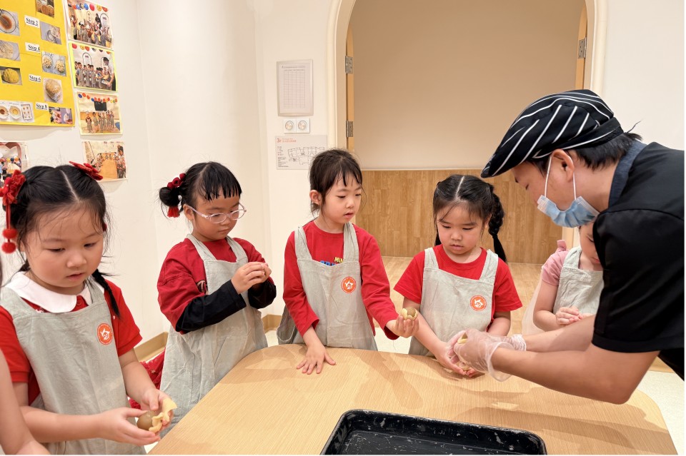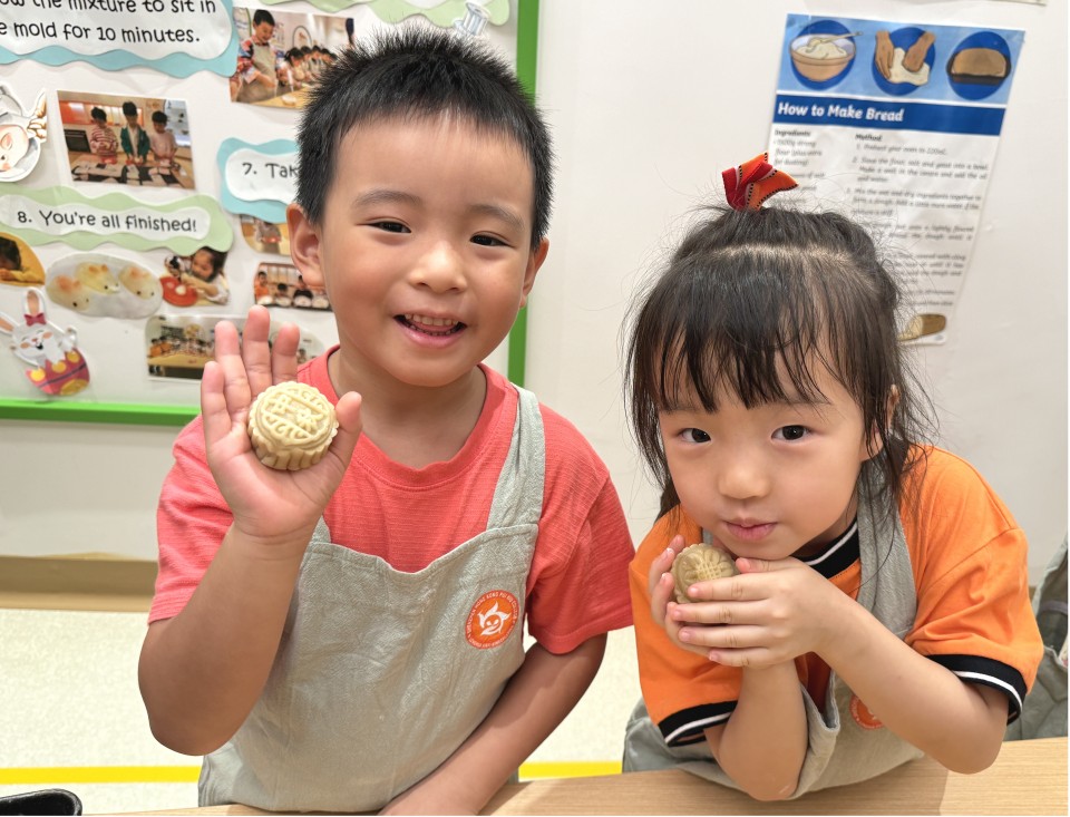 体验传统,品味美好,餐厅准备好了饼皮、模具、豆沙馅和莲蓉馅……孩子们兴奋地搓搓小手,开始制作属于自己的月饼!在老师的指导下,体验传统美食的制作工艺,从包馅到压模,每一个步骤都充满乐趣与挑战,让孩子们在实践中感受中华饮食文化的独特魅力。