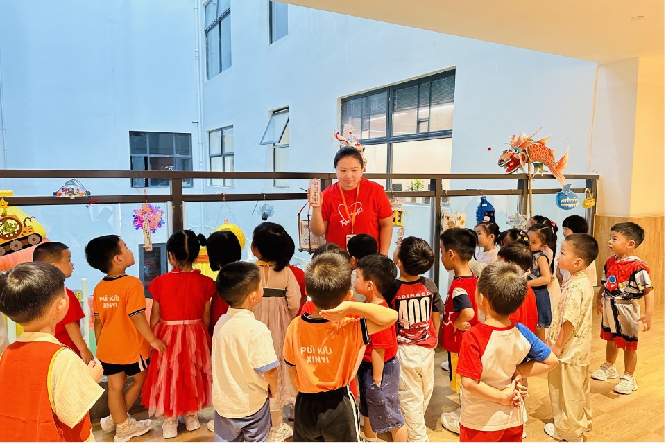 活动的最后,赏灯环节将现场的氛围推向高潮,整个幼儿园也因各种花灯与主题手工的装饰,瞬间变成了一片缤纷的光海!孩子们手牵手,穿梭在校园里,欣赏著彼此的作品,不仅学会了赞美,更感受到传统节日的浓厚氛围。