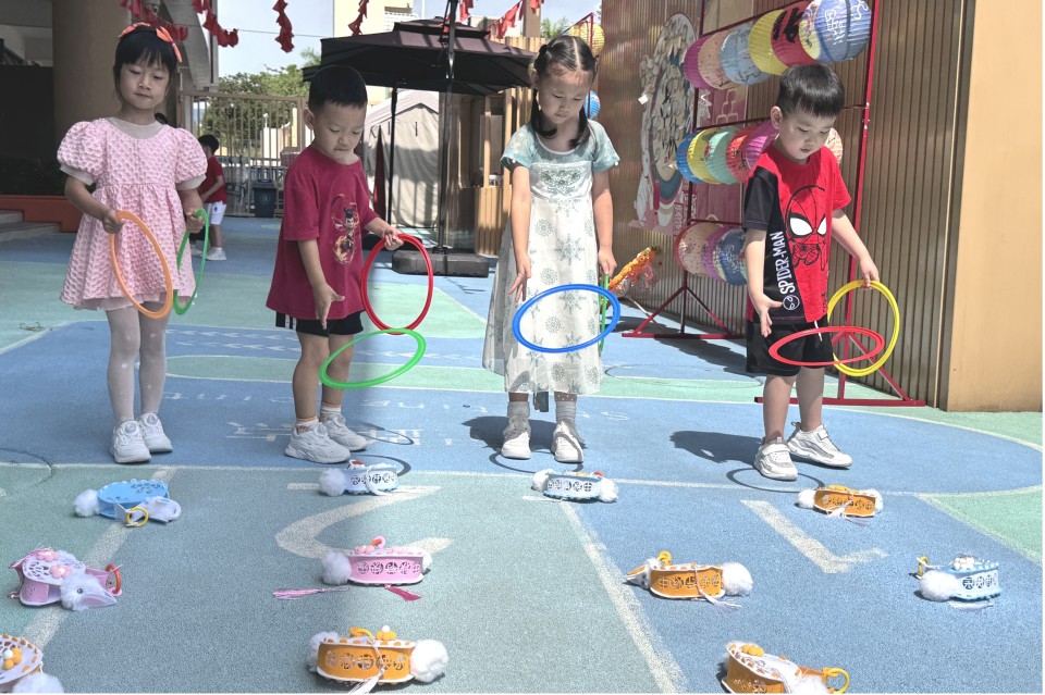 校内的各个角落,根据不同年级孩子的年龄特点,设计了专属的传统游戏环节,让每一个孩子都能在适合自己的体验中感受民俗的乐趣。